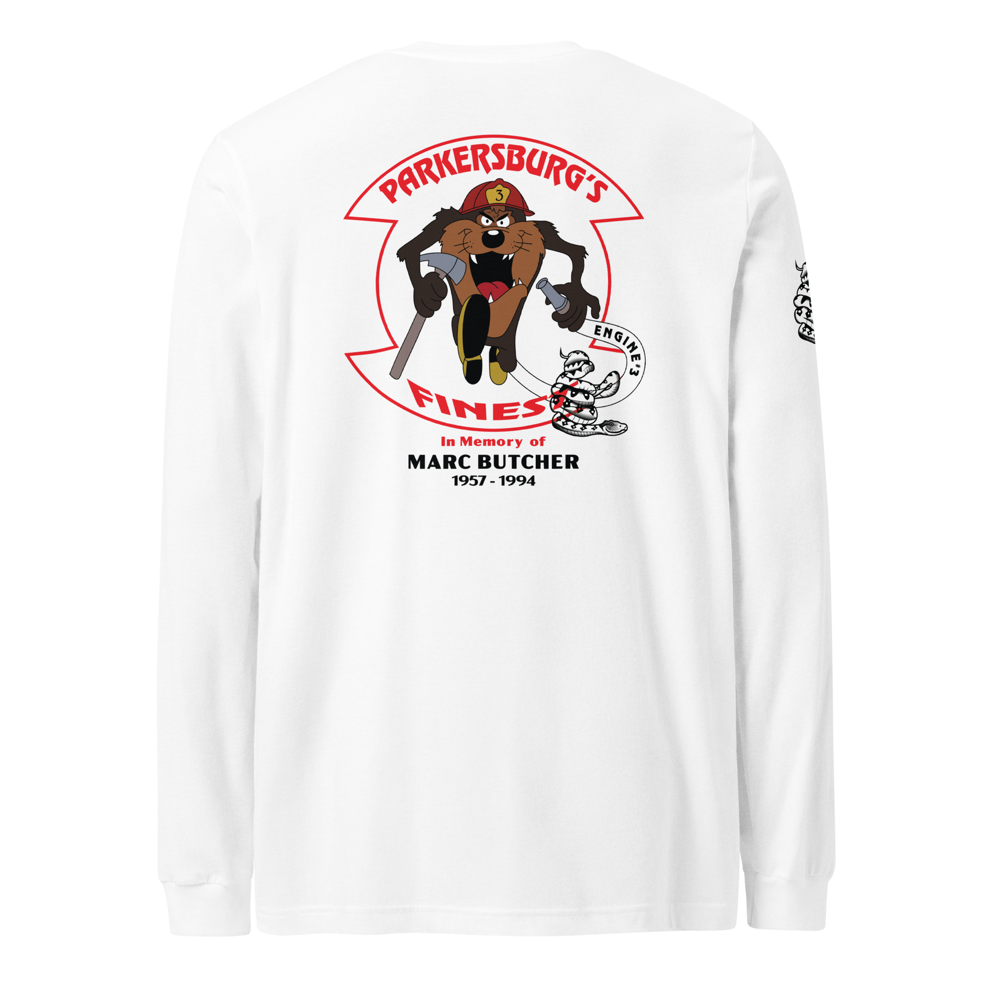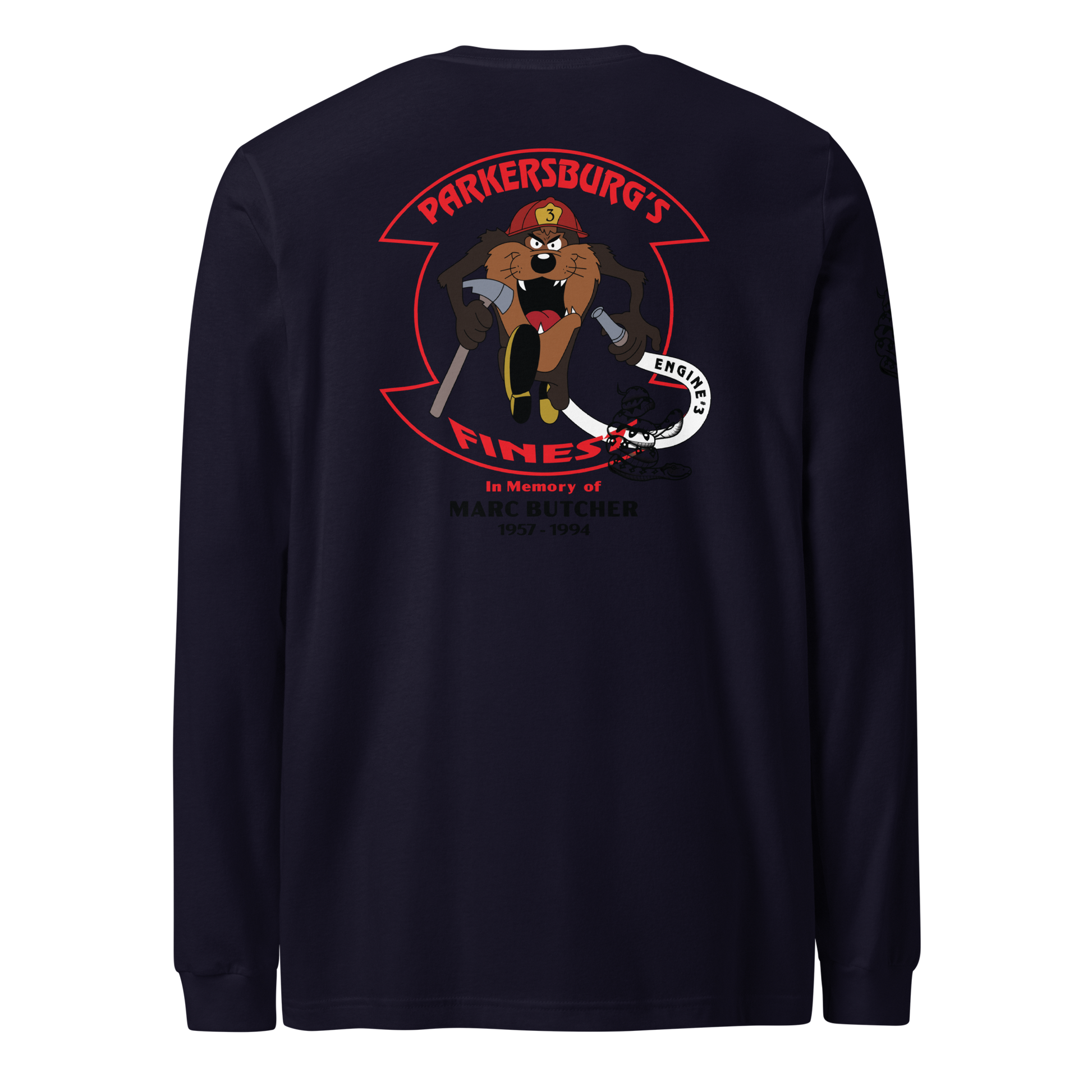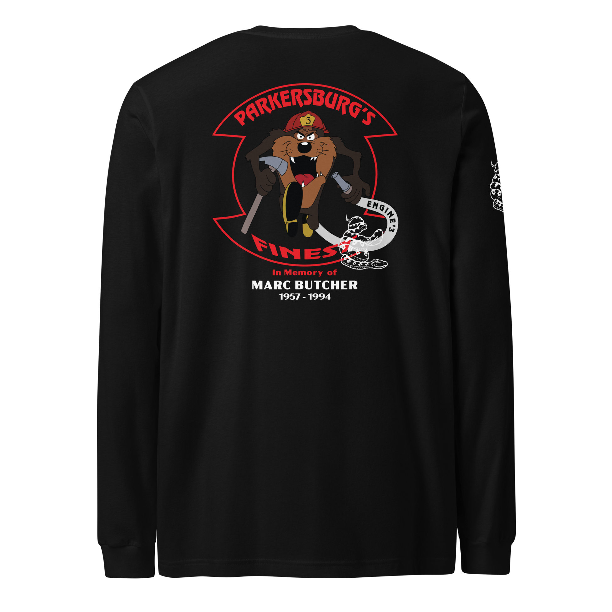 Marc’s legacy lives on not only through his dedication to the job, but also through moments that defined his character — including the time he rescued a large snake from a house fire, a story still remembered within the department to this day. This memorial tee brings that spirit of bravery and brotherhood back to life with the same artwork that once symbolized it.