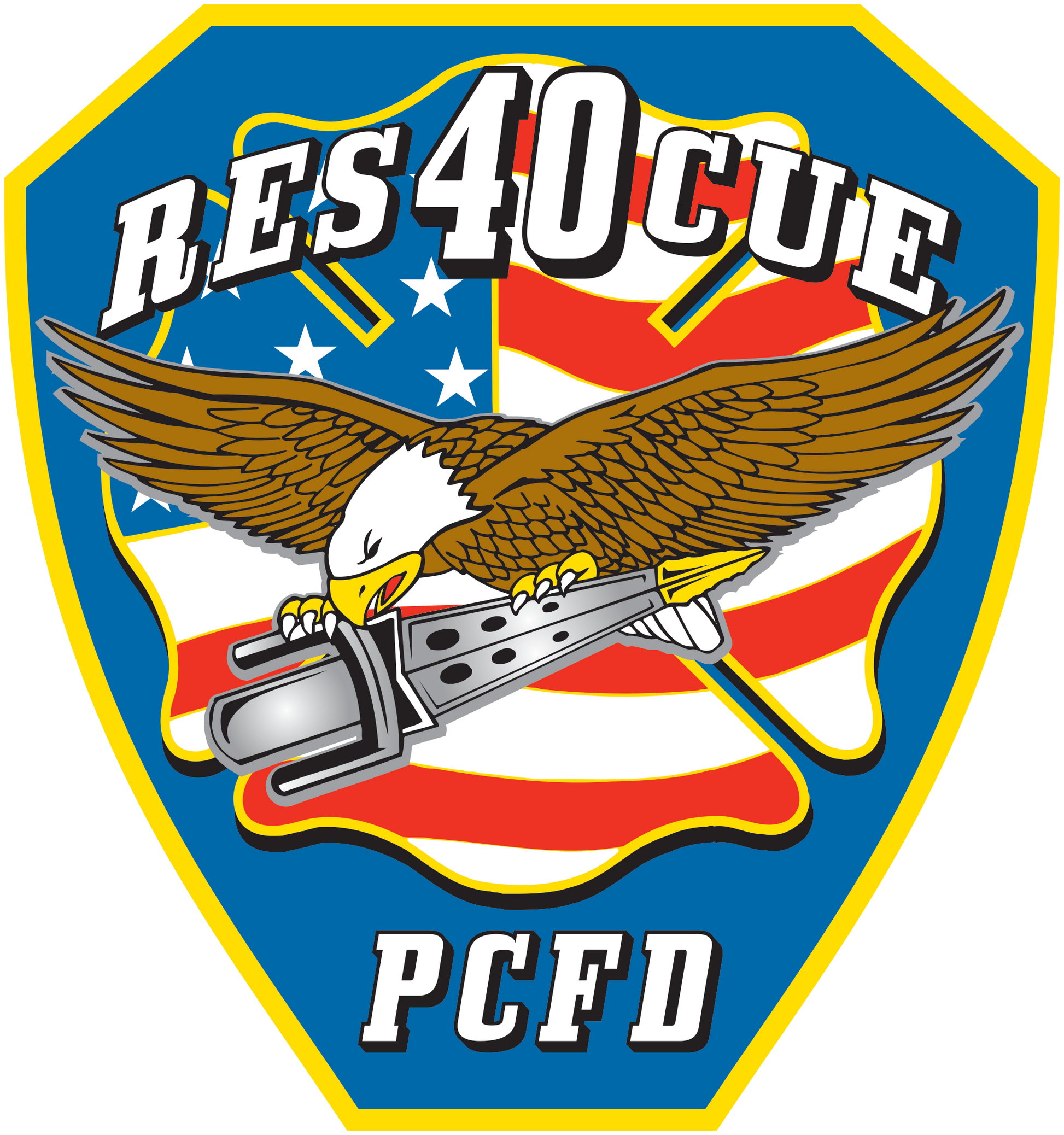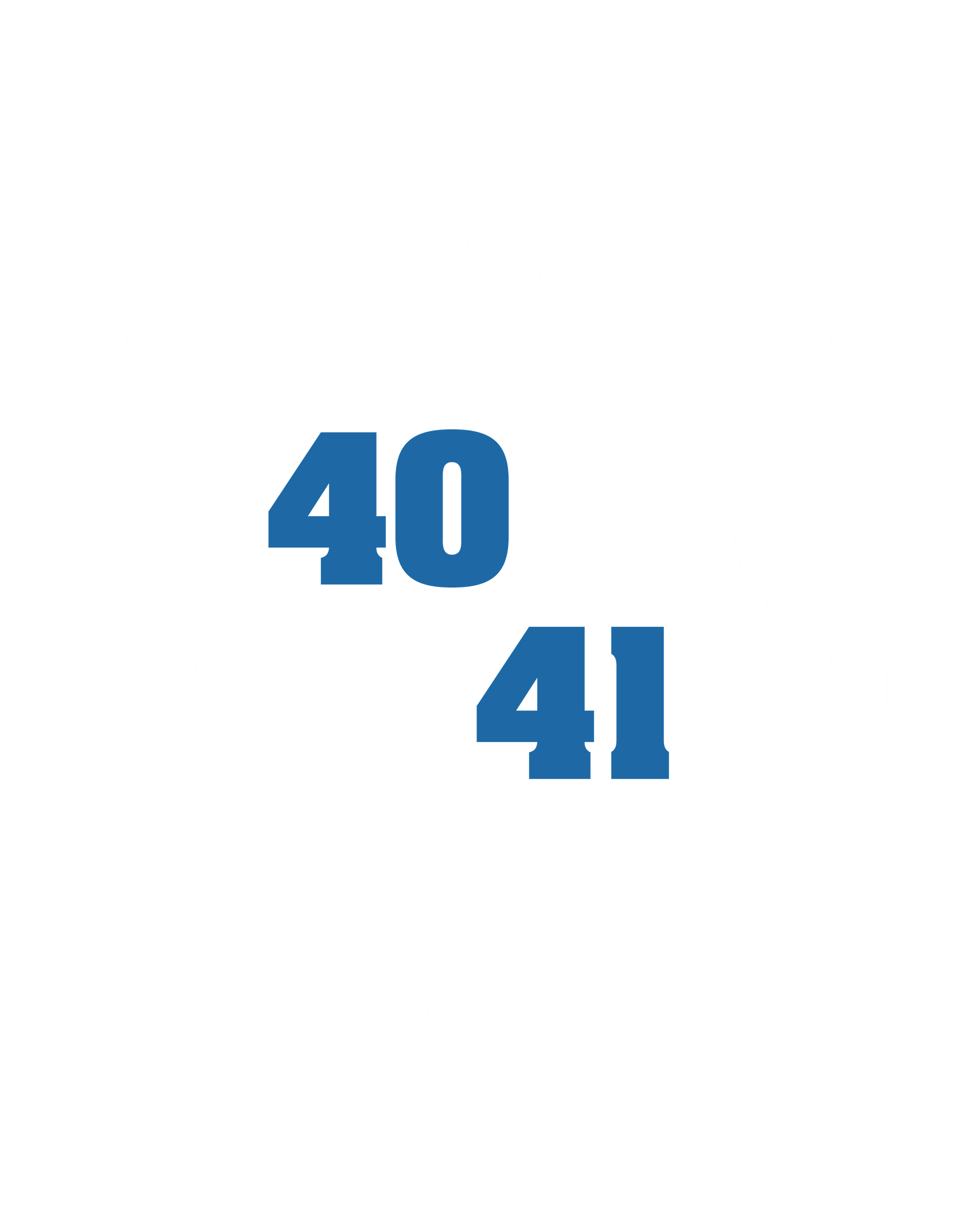 Front: Classic PCFD Maltese Cross with bold “40 & 41” centered in Rescue Blue.